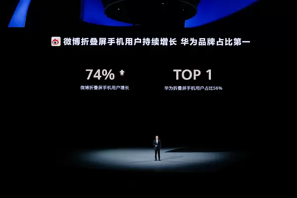 从2012年1月9日第一款华为手机“小尾巴” 登陆微博,到2019年微博为华为第一代折叠屏适配“平行视界”与“智慧多窗”,微博长期与华为保持紧密合作。王高飞表示,从华为Mate10 开始,使用华为终端的用户在微博上的占比迅速攀升,不到3年时间,从12%增长到36%,占比第一。近年随着国内折叠屏手机出货量的不断攀升,微博的折叠屏用户数量不断提升,而其中华为品牌依旧占比第一,达56%。