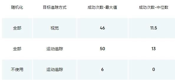 对于控制方块的任务,使用了「任务随机化」训练得到的策略能成功完成翻转的次数要多得多,如下表。并且,通过摄像头信号估计位姿进行控制得到的结果和使用运动追踪传感器得到的结果差不多,这也体现出了视觉估计网络的高准确率。