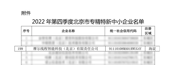 近日,北京市经济和信息化局公布了2022年第四季度北京市专精特新中小企业名单,摩尔线程智能科技(北京)有限责任公司(简称:摩尔线程)成功入选,获评“专精特新”企业称号,彰显了摩尔线程强大的技术实力、扎实的创新能力和独特的市场竞争力。