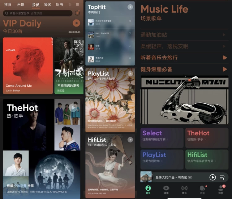 此外,QQ音乐12.2版还针对会员用户推出「会员」专区,一键直通优质会员音乐,乐享会员畅听权益;同时,在社区新增玩乐专区「派对」,聚合了“弹一弹”“Music Zone”“音乐宠物”等玩乐功能,你可以在此与好友一起尽享音乐、游戏、社交带来的多元娱乐体验。
