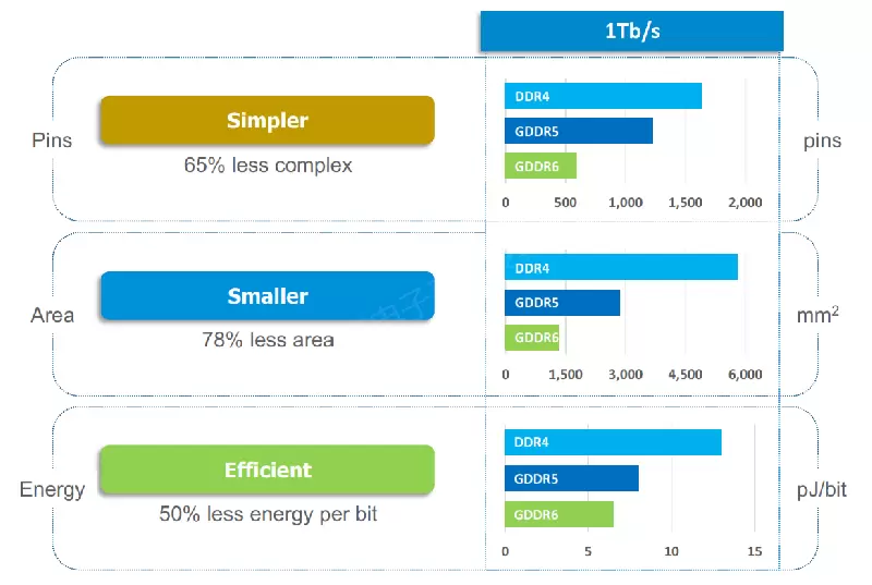 随着更多内存被加进同一封装中,每一世代的GDDR内存(包括美光)技术不断在改进中,而且更加强调以更低功耗执行更快的速度