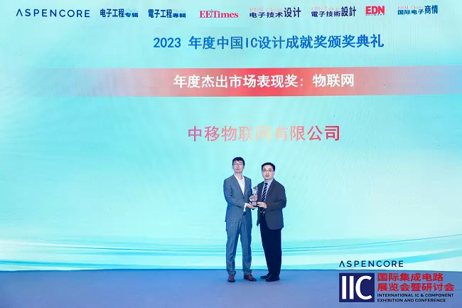 2023年3月30日,“2023中国IC领袖峰会暨中国IC设计成就奖颁奖典礼”在上海隆重举行,中移物联OneOS物联网操作系统荣获“中国IC设计成就奖之年度杰出市场表现奖-物联网”奖项。