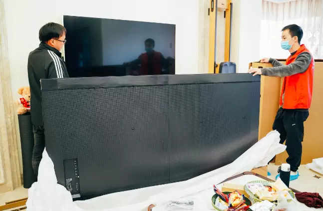 这么大的电视,自己动手安装风险还是很高的,TCL派了专业的师傅帮助安装,移动电视时小心翼翼,服务态度非常客气,整个环节流畅省心,这一点给TCL的服务点个赞。