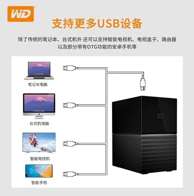 WD My Book Duo台式硬盘广泛兼容市面上大部分的PC、笔记本电脑、手机等设备,并且兼容Windows和macOS系统,能够为用户提供海量、高速的存储空间,非常那些需要备份大量视频、图片,并且需要随时高速调用的内容创作者、小型工作室作为基础备份存储解决方案。