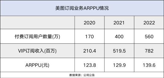 由此计算,可以得出订阅业务的ARPPU。ARPPU能够反映付费用户为应用带来了多少收益,显示出一个忠诚付费用户实际上愿意支付的金额。近年来,美图订阅业务的ARPPU在逐年提升中,这表明用户对平台产品的价值越来越认可,也意味着产品的盈利能力和用户满意度在提高。
