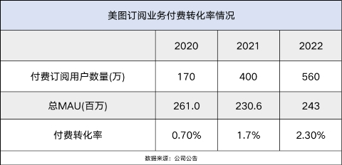 继续拆解AI绘画的驱动涟漪,除了上述提到的订阅业务收入增长之外,财报显示截至2022年12月,美图公司旗下应用拥有超过560万VIP会员。