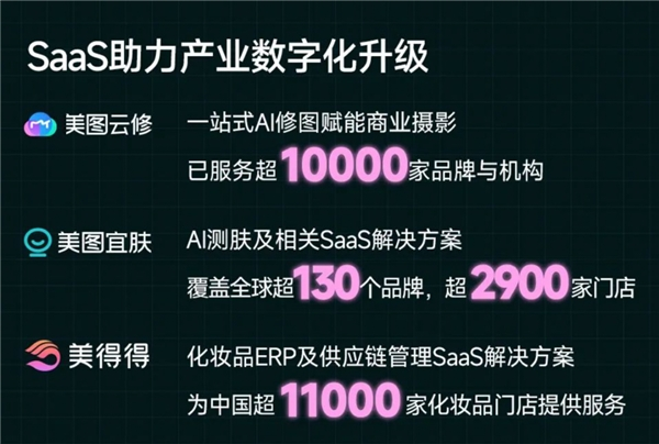 可以看到,依托领先的影像能力,美图公司正在通过SaaS及相关业务,助力实体经济数字化转型。年末,美图荣获2022数实融合年度优秀企业,旗下产品美图云修荣获2022数实融合实践优秀案例。