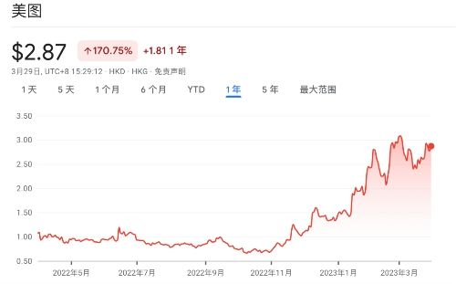 这也和美图股价的表现相对应。自2022年10月处于低位之后,美图公司的股价便开始反弹上行,在过去的2月份,美图公司股价累计涨幅超五成,成为港股市场最热门的股票之一。