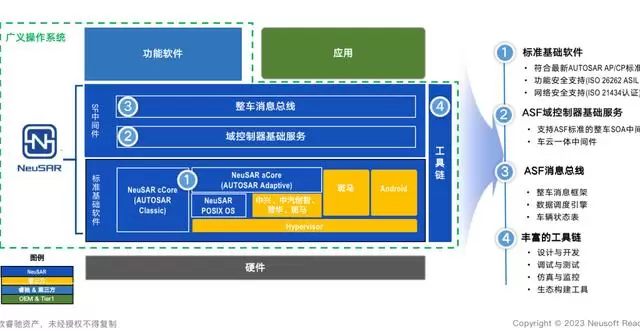 在不断承上启下、应用创新中,东软睿驰自主研发的 NeuSAR ——跨域融合的基础软件和中间件,通过与诸多本土芯片、微内核企业的共同协作,不断的发展壮大,积极推动生态系统的发展。