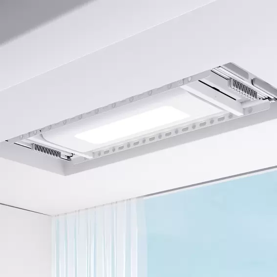 舒适与美感兼备的阳台空间,是提升家庭幸福感的重要场景,在提升阳台晾晒空间的美感与实用上,米家从未止步。米家智能晾衣机1S采用纤薄机身设计,整机厚度仅为9.9cm,比上一代产品薄近30%,整机贴顶折叠,能够巧妙融入各种家装环境,支持嵌入安装,晾杆收回后可完全隐藏于吊顶内部,既不占空间不挡内开窗,又增加了阳台整体美感,在视觉享受上更加完美。通过独具匠心的工业美学设计,米家智能晾衣机1S达成了“藏”与“显”的平衡,再次重塑智能晾衣机美学标准,引领阳台美学新风尚。