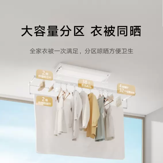 功能升级,超大容量晾晒分区满足全家人需求