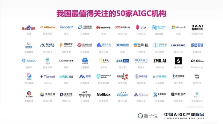 ChatGPT的火爆出圈,让全世界都关注到了AIGC背后的价值,更推动了AIGC产业的高速发展。日前,首届中国AIGC产业峰会在北京举办,大会聚集了领域内产学研代表,共同探讨了包括大模型、生成式AI、ChatGPT等时下热议趋势和话题。首个《中国AIGC产业全景报告》也在会上正式发布,报告重点分析了中国AIGC产业发展现状和未来前景,并从产品进展、技术实力、落地变现、品牌影响力等全方位角度,评选出“中国AIGC领域最值得关注的50家公司”榜单,百度、阿里巴巴、腾讯等科技巨头,科大讯飞、影谱科技等创新型AI公司入选。