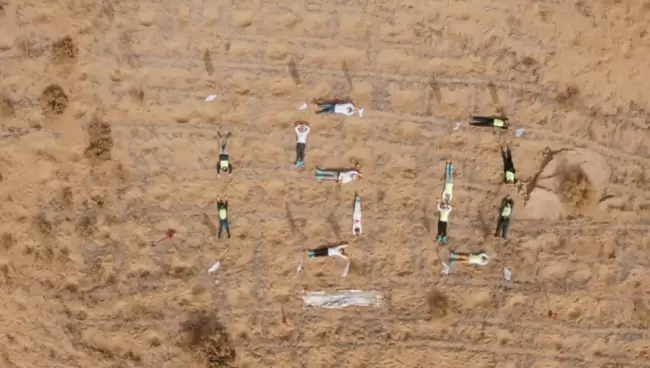 活动尾声,柯尼卡美能达公益团队仰卧于黄沙之上,全身心地感受这片大地的力量。2023年,正值柯尼卡美能达集团创立150周年,为传达出面向下一个150年聚力环保的意志与决心,公益团成员还以身躯排列出“150”的字样,用特殊的形式为这场公益行画下圆满句号。