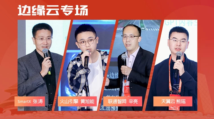 边缘云是边缘计算领域特别火的一个赛道,为此我们专门设立边缘云专场,联通智网的辛亮博士和大家分享5G边缘云在车联网领域的落地;SmartX是超融合领域的独角兽,SmartX的张涛老师和大家分享了SmartX 边缘计算解决方案;火山引擎的黄旭能老师和大家分享了火山引擎边缘云在渲染领域的应用;天翼云的熊瑶老师和大家介绍天翼云边缘计算发展规划与实践。
