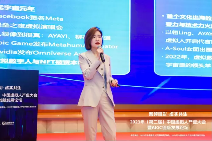 艾媒咨询集团CEO兼首席分析师——张毅在本次活动上作开幕致辞,并重磅发布了《2023年中国虚拟人产业发展与商业趋势研究报告》《2023年中国AIGC产业发展趋势研究报告》两份报告,根据艾媒数据中心、艾媒商情舆情数据监测系统基础数据,聚焦虚拟人技术创新及AIGC的商业应用案例,报告围绕中国虚拟人产业发展背景、中国虚拟产业投融资情况,虚拟人典型应用类型及虚拟人产业发展趋势等方面进行分享,为虚拟人行业发展带来新观点、新视角和新机遇。