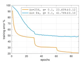 在这个迭代过程其中,两个典型的网络,AlexNet和ResNet-50具有里程碑的意义。然而,在一个英伟达的 M40 GPU 上用 ResNet-50 训练 ImageNet 需要 14 天;如果用一个串行程序在单核 CPU 上训练可能需要几十年才能完成[3]。因此,如何在更短的时间内在ImageNet上训练好AlexNet和ResNet-50一直是科研工作者研究的课题。