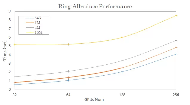 图示 Ring-Allreduce不同节点数下的传输耗时