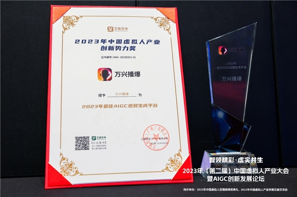高人效、短周期、低成本,在短视频营销领域中,相信无论是对于商家还是个人来说,24小时随叫随到的“真人”主播,或许都是不错的效率工具和营销好助手。此次AIGC创新发展论坛上,万兴播爆一举斩获“最佳AIGC视频生成平台”奖项。