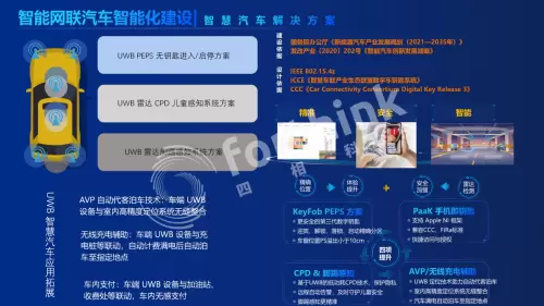 面向传统制造业产业,四相科技把位置数据与业务流程直接关联,以高精度定位技术助力传统制造企业实现复杂工序数字化与自动化转型;面向智慧汽车领域,四相科技积极加入ICCE、ICCOA 等车联网联盟,携手联盟伙伴持续探索数字钥匙与智能网联汽车应用的结合,打造车端UWB 应用与场端 UWB 高精度定位的生态闭环。