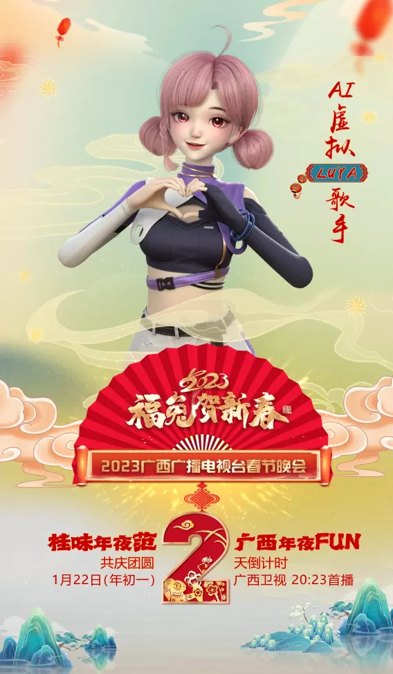 自出道以来,AI虚拟歌手Luya的表现可以说是有目共睹。2022年8月,刚出道的Luya推出个人单曲《迷雾之中的微光》,进入QQ音乐热歌榜TOP17、QQ音乐飙升榜TOP4。2022年11月,Luya发布的首支唱跳MV《铠甲》,登上QQ音乐新歌榜TOP1。随后的12月至1月,Luya活动频繁,与优酷视频大热动漫《少年白马醉春风》OST合作,发布翻唱歌曲《沈园外》;与两点十分动漫旗下虚拟偶像@点赞仙天赋一饼合作共创,推出歌曲《敲响一年春》;元旦与春节期间,分别登上广西卫视《你好!2023——广西卫视元旦特别节目》与《2023福兔贺新春》,献唱个人单曲。