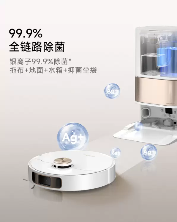 在全民更加重视健康生活的大背景下,除菌功能被广泛应用于家用清洁电器中,其中银离子对多种常见病菌具有显著的杀灭效果,且可长效抑菌。追觅S20系列在水箱中加入银离子模组,在清水箱除菌后,进而对拖布除菌,最后通过拖布对地面进行除菌,并配备抗菌尘袋,组合成一套全链路除菌方案,有效保护家人,创造更健康的家居环境。