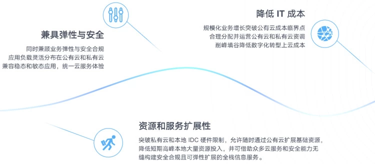 混合云 2.0 在 1.0 的基础之上集成同构的全栈私有云能力,涵盖虚拟化、SDN 网络、裸金属、分布式存储、数据库缓存、大数据平台及统一云管平台等服务能力,实现统一运营运维管理,统一安全服务保障,并与公有云内网互通,可随时进行业务和数据的云上云下互通迁移。