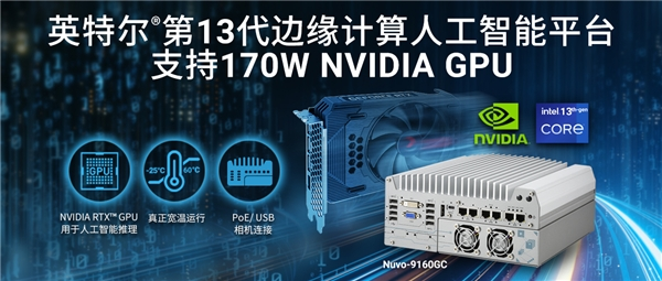 工业级强固型嵌入式平台厂商Neousys宸曜科技发布Nuvo-9160GC宽温型边缘计算人工智能平台,搭载英特尔第12/ 13代处理器平台和1张170W NVIDIA RTX GPU卡,提供强大的CPU和GPU性能。Neousys宸曜科技站在行业技术更新变革的前沿,发布可支持GPU的强固型英特尔第12/ 13代酷睿工业级计算平台。Nuvo-9160GC拥有真正的宽温运行能力、丰富的相机接口和灵活的扩展功能,是林业和建筑业导航机器人、自主移动机器人(AMR)、智能视频分析或遥操作的理想解决方案。