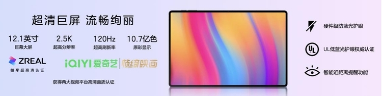 为打造轻量化办公体验,中兴AxonPad拥有极致纤薄的机身,厚度仅6.5mm,搭配12.1英寸2.5K大屏和8mm超窄边框四边等宽,视觉上带来更加沉浸式的体验。屏占比高达87.7%,完美兼顾宽广视野与灵巧便携。基于对用户使用智能手机时长较高的洞察结果,屏幕通过了UL低蓝光护眼权威认证,还贴心打造了系列护眼功能,设有近距离提醒功能,为用户带来更加健康的全面屏体验。此外,中兴AxonPad提供水墨和敦煌两种配色可供选择。