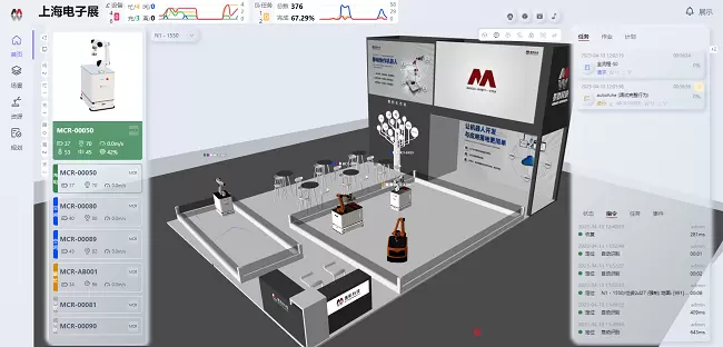 现场展示的墨影天工移动协作系统,它是基于对机器人行业深度探索开发出来的端到端全域部署、全域开放接入、全域统一化、全域低代码化、全流程透明化的跨平台机器人系统中台。系统用高度复杂和抽象化的中台架构降低各方开发难度与门槛,解决了不同项目业务逻辑不同、集成设备不同、各软件之间接口协议杂乱不同,导致的项目落地“慢、繁、难”问题!
