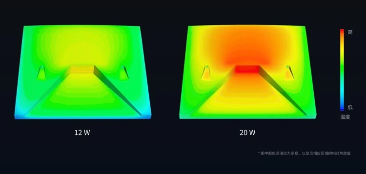功率为 12 W 与 功率为 20 W 激光雷达运转时舱内集成位置的温度对比