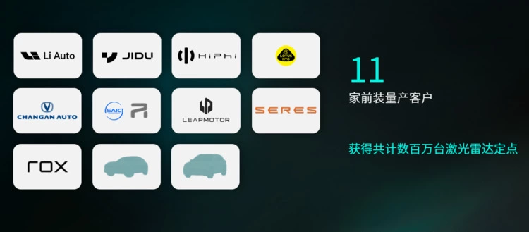 禾赛作为全球车载激光雷达的市场领导者可以说实至名归。2022 年禾赛全年营收和交付量,均超过了 8 家美股上市激光雷达同行公司的总和。其 ADAS 激光雷达旗舰产品 AT128 已经获得包括理想、集度、高合、路特斯、长安、上汽等在内的 11 家顶级汽车厂商及科技公司共计数百万台激光雷达量产定点,从去年 7 月开始交付,已赋能理想 L9、L8 Max、L7 Max,高合 Hiphi Z,路特斯 Eletre 等多款车型上市。