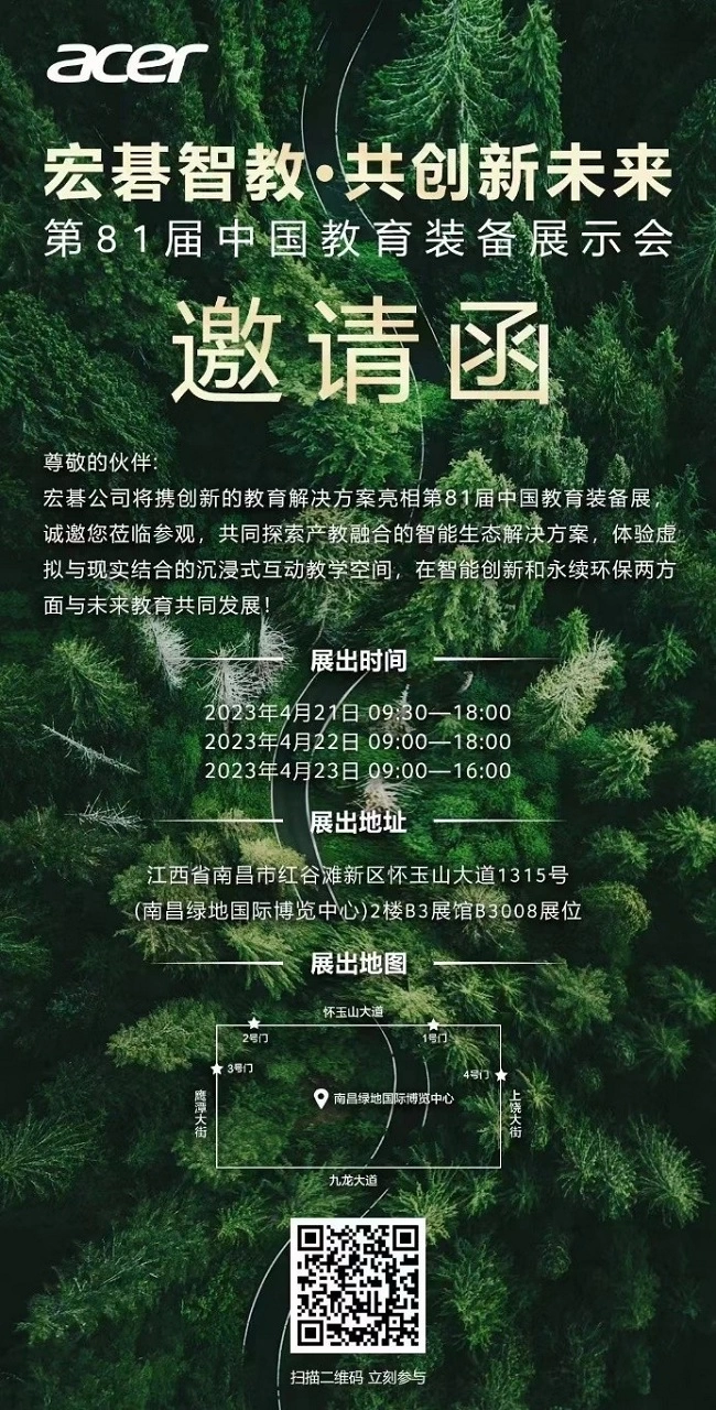 教育是根基,是未来,教育当以最客观、最公正的意识思维教化于人,现代科技赋能教育,教育需要最新的信息技术,需要最现代化的超级终端加持。4月21日—23日,让我们在南昌一起见证宏碁带给我们的惊喜吧!