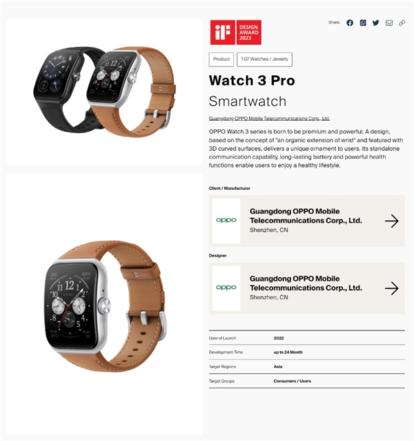 独特设计再获认可!OPPO Watch 3 Pro斩获2023德国iF设计奖
