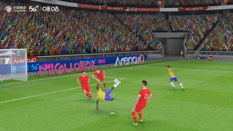 在体育运动领域,咪咕快游通过算力和数字引擎技术实现了元宇宙比特转播。卡塔尔世界杯期间,比特转播将现实中的赛事1:1搬运到元宇宙空间,为观众带来3D立体的数字赛事实况,从而摆脱现实摄像机位的束缚。用户可以任意选择观赛位置与角度,看到第一人称视角、跟随视角、子弹时间等数十种常规拍摄难以达成的特殊视角,获得体育观赛新体验。