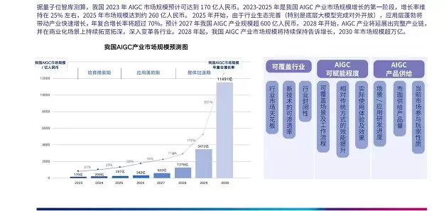 ChatGPT的亮眼表现引发新一轮的AIGC备战升级,AIGC产业生态也正在加速形成和发展。根据市场机构预测,未来五年中10%-30%的图片都将由AI参与生成。据量子位报告统计,到2030年,AIGC的市场规模将超过万亿,在内容生产领域和延伸应用领域都有着广阔的空间。