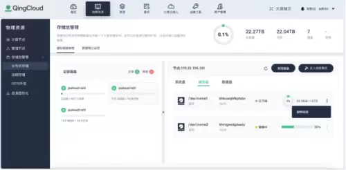 应用场景:在集群内,当服务器的磁盘出现损坏时,原本需要通过命令行将磁盘剔除并迁移数据,再进行新盘替换、格式化,添加到存储集群内等一系列繁琐的操作步骤。而在最新 v4.2 版本中,只需通过可视化的 UI 界面就可以完成配合替换磁盘的操作,无需在 CLI 中操作,大大降低了企业运维管理人员的操作难度,让企业更加高效地运营,减少因硬盘故障带来的业务损失。