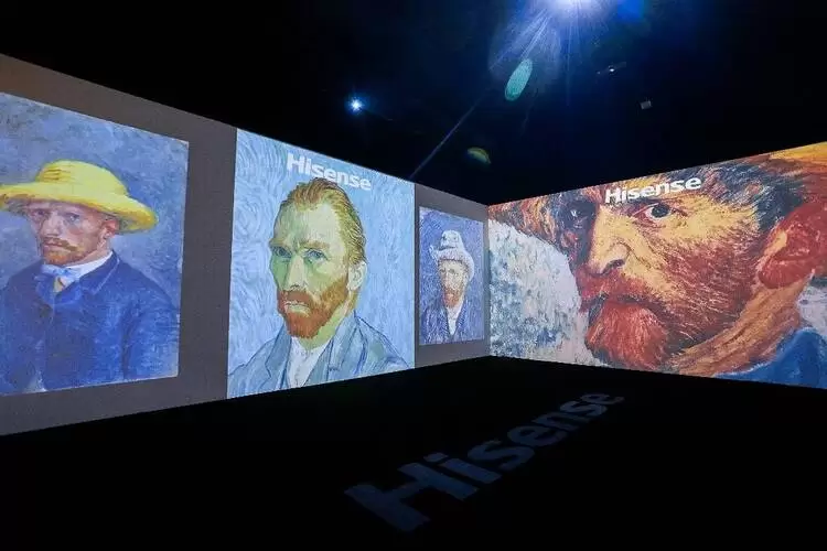 “海信激光场景展 · 致敬梵高”展区将多屏呈现梵高大作,将数字艺术与场景空间融为一体,打造沉浸式体验,令观众仿若置身于梵高的色彩世界中,追随他的视角去看待画笔下的丰富多彩、浪漫多情,身临其境般感受大师的天才创造。