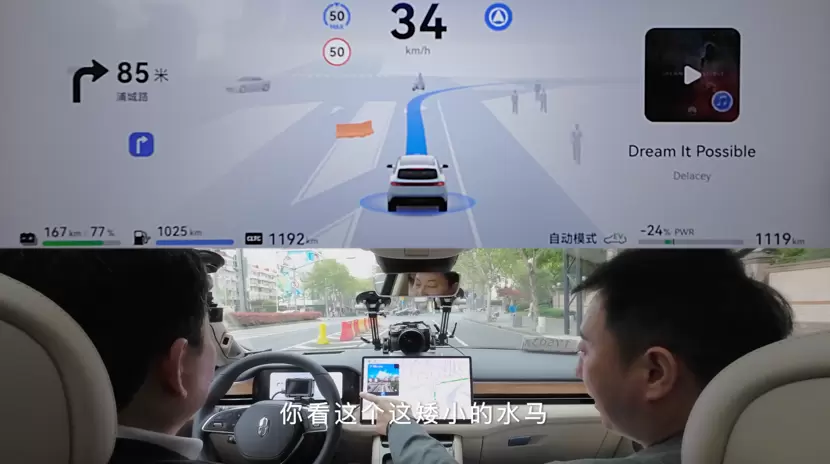 这次试驾路线涵盖了城市拥堵道路、高架桥和高速道路等等,从城区驾驶到郊区,可以看到余总全程手扶方向盘“零”干预,问界M5智驾版能精准识别行人、非机动车、大车、红绿灯等等,可以做到舒适、安全地处理各种复杂场景。
