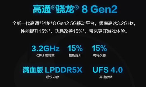 为给予玩家卓越高效的游戏体验,ROG7系列均搭载了新一代高通骁龙 8 Gen2 5G移动平台,采用台积电4nm工艺打造,其频率高达3.2GHz,性能较上一代提升了15%,带给玩家更出色的性能释放和高能竞技体验。