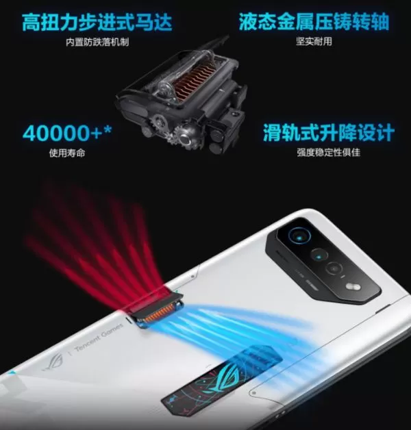 ROG7搭载了升级至7.0版本的矩阵式液冷散热架构,SoC中置结构可保持良好手感,重构真空腔均温板和重定型石墨烯在面积和工艺上均实现了大幅升级,散热表现更优。ROG7 Pro则采用了矩阵式液冷散热架构7.0 Plus,新增酷冷风洞系统,且搭载了业内首创的酷冷风动阀,在连接酷冷风扇7后会自动打开,通过冷风对流对SoC实现快速降温,可提升20%散热效率。同时风扇还配备有半导体制冷芯片和AI温控系统,可根据手机运行状态智能匹配不同制冷模式,最高风力提升15%,带来高效散热体验。