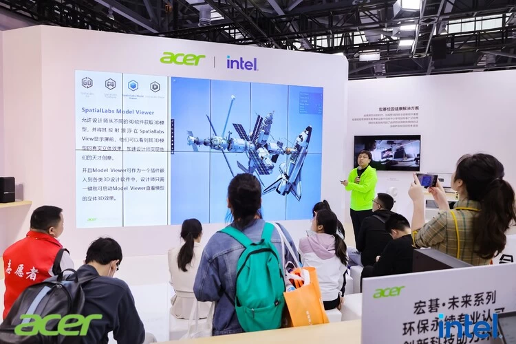 宏碁SpatialLabs技术通过先进的人眼追踪技 术、3D光学显示技术、人工智能运算和最新的实时渲染技术所构成,为使用者提供直观交互和沉浸感的视觉冲击体验,宏碁以该技术为核心推出ConceptD 7 SpatialLabs超感空间裸眼3D版创作本、战斧300SpatialLabs超感空间裸眼3D版游戏本,SpatialLabs View超感空间裸眼3D版系列便携显示器等多款设备,并以此为基础构建解决方案,现场观众对于这种无需佩戴设备观看沉浸三维内容的体验非常感兴趣,并争相体验这种新奇的感官刺激,深切感受到宏碁创新技术的独有魅力及行业优势。