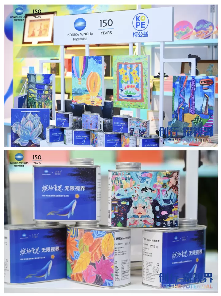 此外,柯尼卡美能达在“创行 应用展示区”内还特别设置了“柯公益”展示专区,通过柯尼卡美能达数字印刷产品,将特殊儿童的童画巧思,再现于书签、标签以及包袋上,鲜艳灵动的色彩的传递为此次展会更注入了别样活力,同时也传递出柯尼卡美能达“有爱,就有柯能”的公益理念。
