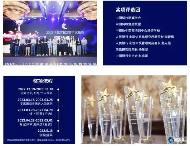 与第八届BDIE亚太银行数字化创新博览会同步启动的,还有为嘉奖数字化转型过程中先锋的职业家而设立的权威奖项评选活动——“BDI华鹰奖”。BDI华鹰奖在评选过程中一直严格遵守科学、公平、公正的评选原则,邀请多家头部银行企业负责人和行业协会、联盟作为评选团,评选出真正优秀的银行企业,并在每年BDI华鹰奖颁奖晚宴上进行荣誉嘉奖!