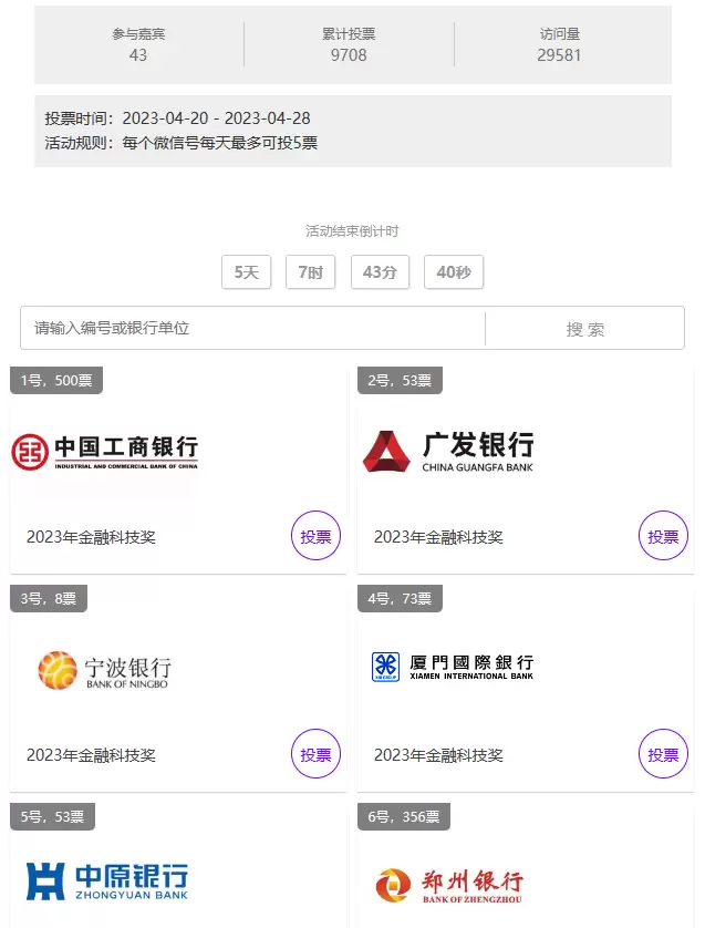 截止到目前,已有21家银行入围“BDI华鹰奖”,其中包括众多头部银行企业,比如中国工商银行、广发银行、宁波银行、厦门国际银行、中原银行、郑州银行、东亚银行、恒生银行、富滇银行、江苏农商银行等。期待他们最终都能在5月18日BDI“华鹰奖”颁奖晚宴上斩获荣誉,喜获奖杯!
