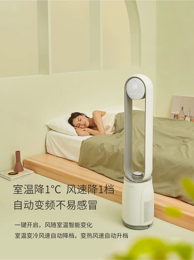 值得一提的是,科西无叶风扇不仅有遥控操作,而且是目前市面上唯一一款操作面板在顶部的无叶风扇,相比于其他要弯腰才能触摸到底部开关的风扇产品,无疑更加人性化。而温感变频功能,也是科西无叶风扇的另一种贴心设计,自动根据室内温度调节风速,回家就能安心躺平,享受舒适生活。