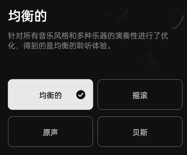 BALANCED 均衡全面优化:针对所有音乐风格和多种乐器的演奏性进行了优化,您将得到更为均衡的聆听体验。