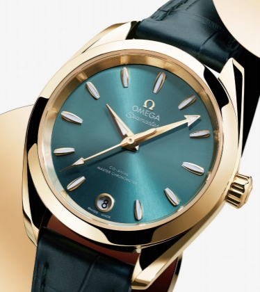 2023 年,品牌推出了两款由欧米茄独有的 18K 金打造的 Aqua Terra Shades 腕表, 璀璨闪耀的金色色调再度演绎了 Aqua Terra Shades 腕表的色彩精神。腕表内部搭载欧米茄 8801 至臻天文台机芯, 通过由瑞士联邦计量研究院 (METAS) 核准的严苛 测试,其精准度、防磁性和整体性能均达到行业的更高标准。