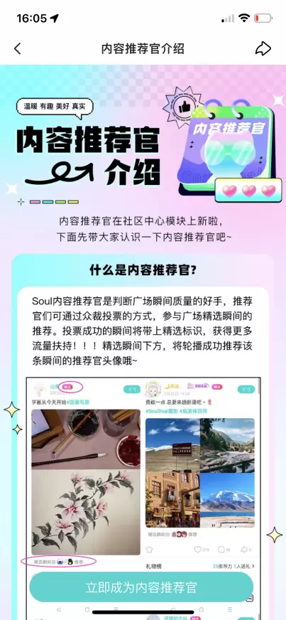 这一模式一方面可以对用户的主流认知和平台认知进行校准,另一方面也能提高用户在社区事务中的参与感。自去年第四季度至今年第一季度,Soul发起风纪委和正向内容推荐官的招募活动,邀请用户对平台生态进行共治众裁,树立正确价值观,推广善意、真实、有趣的正能量内容,共建清朗的网络空间。
