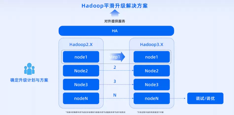 大数据组件每年的版本更新速度比较快,不少企业还停留在 Hadoop2.0 的阶段。许多客户想升级到 Hadoop3.0 版本,体验新的特性和性能优化,但是客户的业务在版本更新中又不能停止,这时应该怎么做?
