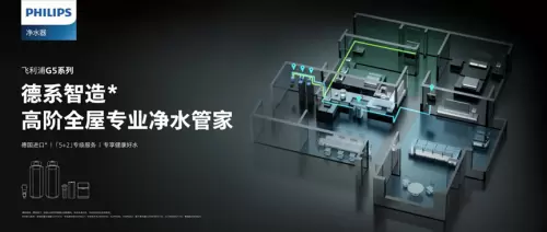 据悉,飞利浦水健康高阶全屋净水G5系列,通过前置过滤器、中央净水机、中央软水机、厨下净水器、即热管线机组成全屋净水系统。作为G5系列的“排头兵”,全屋净水的第一道净水防线——前置过滤器,整机便是源于德国进口,品质坚固可靠。此款前置过滤器还搭载了超宽频定时冲洗周期,可设置长达52周的定时冲洗,能有效设置避开休息时间,突出其人性化的品牌理念;抗压实力达20万次②,超国标10万次标准,能承受全屋涉水家电同一时间段使用,坚守全屋用水安全。
